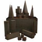 A 19-part geometric models. Made of beech wood and painted gray with red trim around the edges
