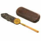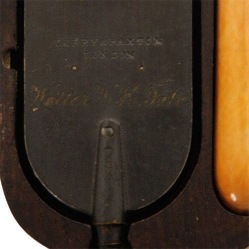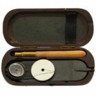 A good late 19th early 20th century Morton’s ophthalmoscope. The embossed mahogany wooden case is lined with green leather and is in excellent condition with a secure latch and hinge. The handle is brass and ivory. The big mirror has a crack, further on in good condition as is the chain of lens mechanism. The Morton’s Ophthalmoscope is signed by Curry and Paxton London and the owner was Walter W. H. Tate. Measurements case 12 x 5 x 1,5 cm