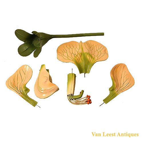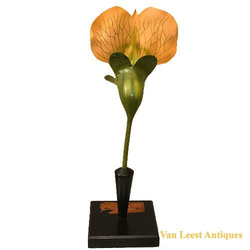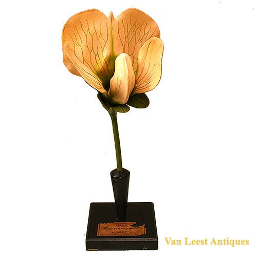 A Lathyrus ( Pisum Savitum) model shaped by Robert Brendel, circa 1920. Brendel (1821-1898) started on the middle of the 19th century a factory for botanical flower shaped in Breslau. This flower model is very detailed and has many parts which can be taken off the flowerstem. Height 49 cm.