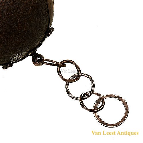 An 18th C bezoar monted in a silver pendant. Bezoars are stones which are formed in stomachs of ruminants, and were believed to have a medicinaal effect. The stones are formulated of blends of clusteren hair and calcium compounds. Diameter Bezoar 6 cm.