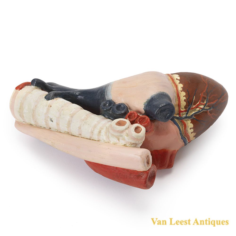 The following internal organs are present: stomach, pancreas, heart, liver and kidneys. What we are missing are the lungs, spleen, small intestine and bladder. If it is a mare, which I doubt, then the uterus and ovaries are also missing. At that time, the models were usually gender-neutral; just look at the Auzoux torsos. The horse is restored by painting work and saving for the next 50 years.