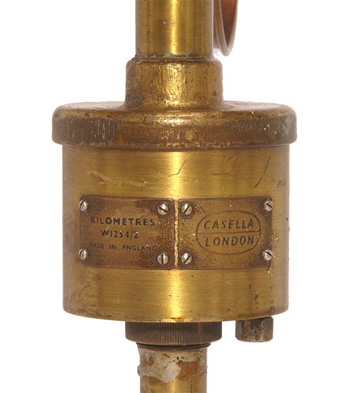 A anemometer is an instrument for measuring either the velocity or the pressure of the wind. The ‘robinson’ model, still in use today, was developed in 1845 by the irish astronomer thomas robinson. His device is fitted with a wheel carrying three or more arms that hold hemispherical metal/ brass goblets, set in motion by the wind. The goblets serve as a counter. 30cm high, arms 20cm long and the copper cups 13cm in diam.