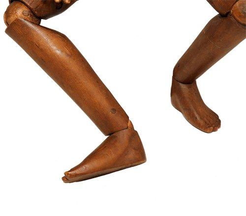 This hugh model of artist lay figure is fully articulated and with well carved details. As there is the head, hands and feet and in mint condition. Date 3th part of 19th century. 115 cm high.