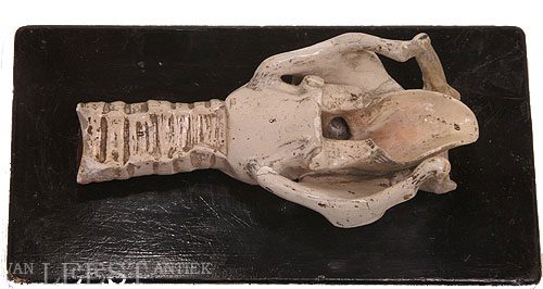 A horizontal model of the pharynx-larynx by bock steger. Made from cast and modelled plaster, handpainted and numbered on a black plaster base, 8 x 15 x 6cm.