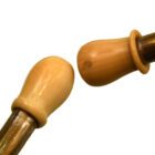 A Cammann binaural antique stethoscope which divides into two pieces with a metal joint. Circa 1890 The silk covered tubing connects to a funnel shaped gutta percha chest piece. The nickel plated ear piece section is joined centrally and this provides its own tension mechanism. The white ear pieces are undamaged. This is 0ne of the later Cammann binaural stethoscopes.