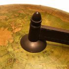 A World – Traffic – Globe from Globe manufacturer Columbus on a wooden “ebonized” base. Published by Erven J Bijleveld. Circa 1930 and has a diameter of 50 cm. Height is 107 cm. The Cartouch gives: Wereld – Verkeers – Globedoor Prof. Dr. Ernst Friedrich / Nederlandsche bewerking van R.E. Kaltofen / Leeraar Rijks H.B.S., Utrecht / uitgave Erven J. Bijleveld, Utrecht / Columbus Verlag G.M.b.H. / Berlin-Lichterfelde. Schaal 1 ; 26.600.000.