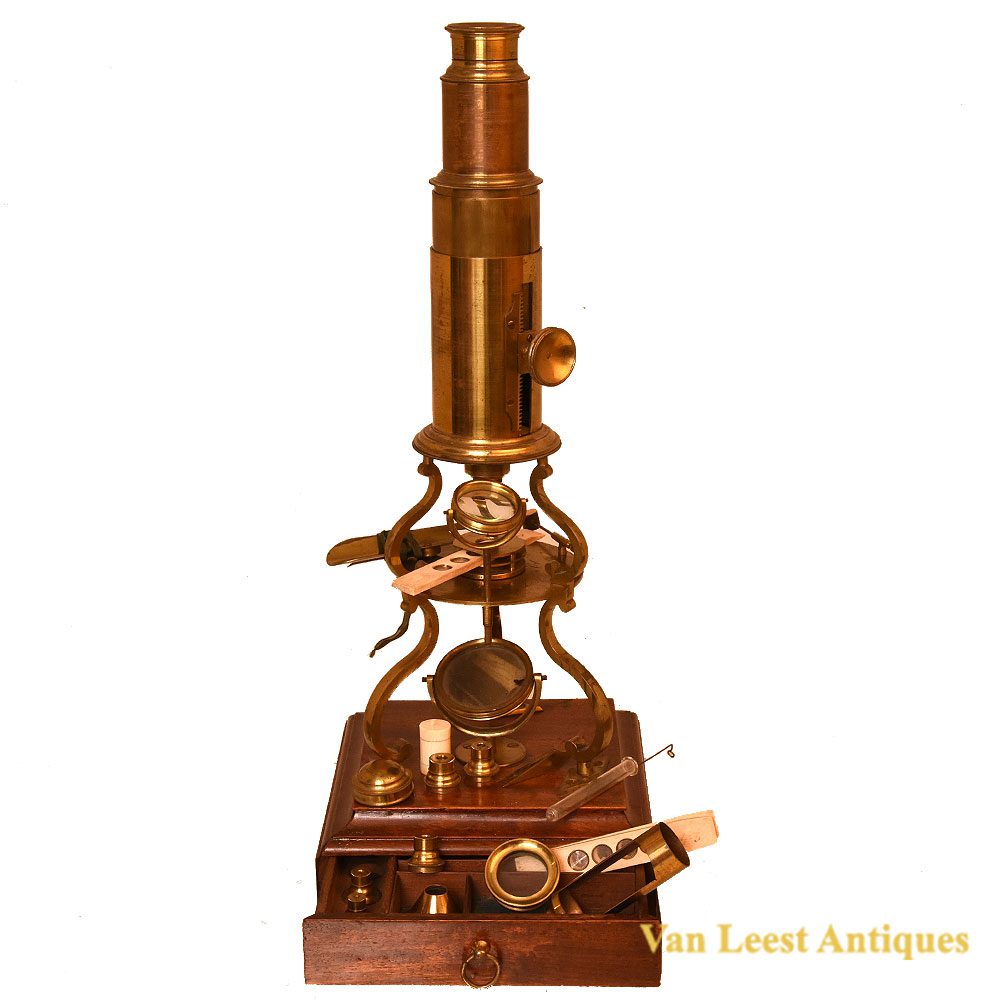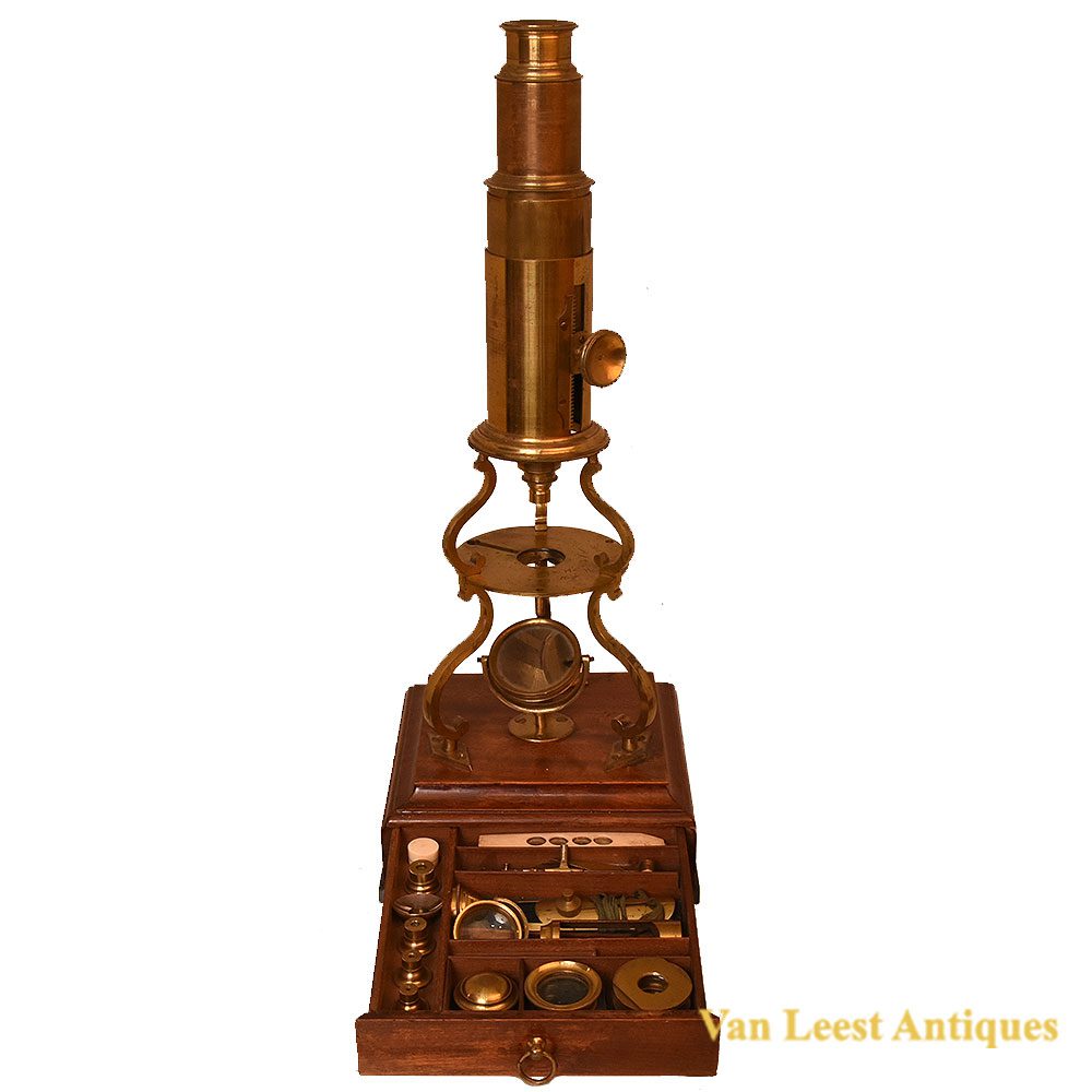 Culpeper type microscope by William Harris & Co. Manufacturers of Optical, Mathematical & Philosophical Instruments, 50. High Holborn corner of Brownlow Street London.