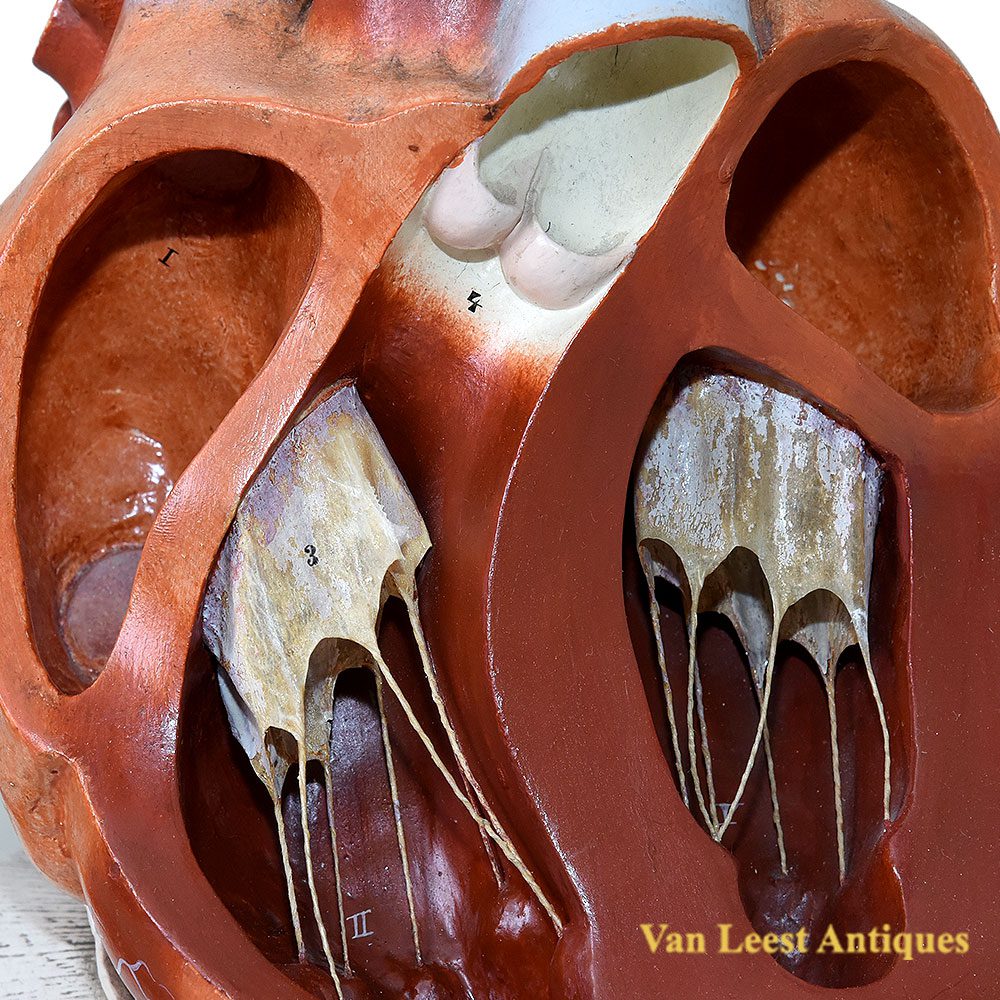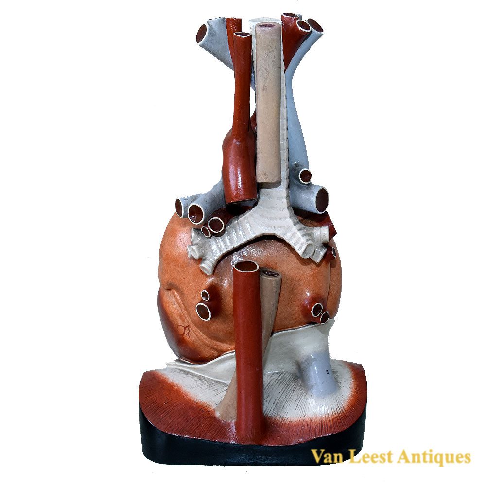 Didactic anatomical model in hand-painted plaster circa 1895 depicting a human heart. Engraved with the maker’s mark Franz Josef Steger and Carl Ernst Bock: “Bock Steger – Lips / G. Steger Schkenditz “. The notation “Lips” stands for Leipzig. The model is on an enlarged scale to provide a better view for learning.