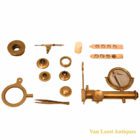 This aquatic Ellis type microscope is signed ‘Dollond Londen’, which suggest and is probably made by Peter Dollond at circa 1775. The microscope is supplied with two objectives with Lieberkuhn, a fleaglass, a lens, a bone box with asseccories for sliders, a bonnani spring stage for use with the two ivory sliders. This microscope focuses by rack and pinion and the mirror is single sided.