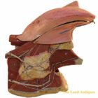 Louis thomas  Auzoux was a french medical doctor who added papier-mache to the modelling process of anatomical models. Auzoux set up a workshop in his home town of saint aubin d’ecrosville in 1827. His newly invented moulding techniques allowed him to re-produce his models. One of these works is the tongmodel, modelled from papier-mache and plaster. Polychrome handpainted with egg-tempura and a finish with russian fishlaquer. Not signed and Circa 1930.