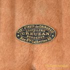 Dr Chasseriaud’s dental case in a walnut case, red velvet interior. Made by “Creuzan à Bordeaux” cutlery firm, an instruments catalogue from 1900 is found on the internet, but this set is earlier, as the instruments in the catalogue are made with metal handles. The set contains twenty instruments including three metal forceps, fourteen instruments for cleaning with faceted blackened pearwood handles, a dental mirror with bone handle, a Dental (or Garengeot) key with turned ebony handle and a small silver bottom puller and lastly the original key.