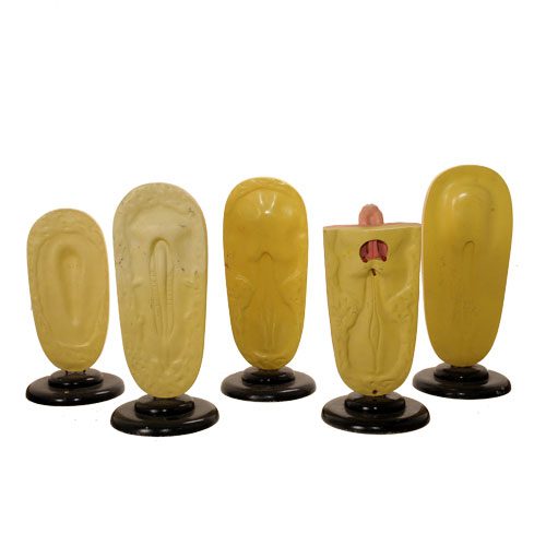 A serie of ten plaster model of the embryonic development of the chicken, c1930. Polychrone painted plaster and in rather nice condition. One base, nr 9, is a replacement. Signed by t gerrard & co ltd, london and 36cm high