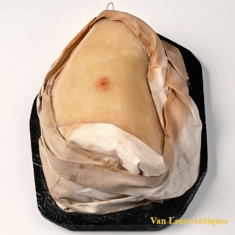 A German dermatological wax model depicting a furuncle at the knee of circa 1930. The anatomical model is signed by Zognam (which is unknown to us).