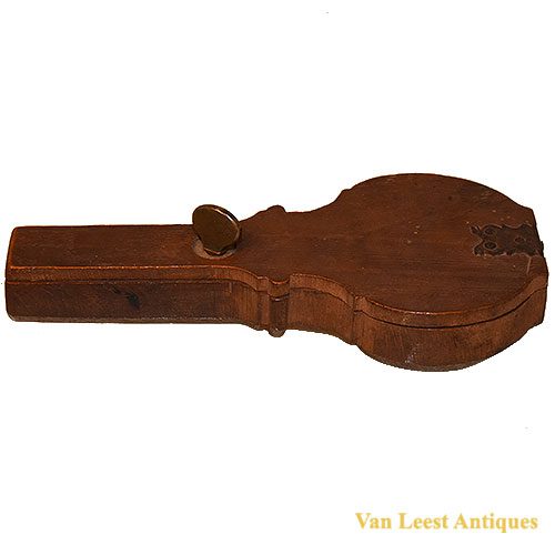 Probably Italian gimbaled compassin original case, mid-18th Century. Made of substantial brass 21cm overall, it has a decoratively shaped support arm, mounting hole, and twin gimbal rings maintaining the compass always in the horizontal. The compass itself is set in a weighted brass bowl and features brass scribed with north line, fine arrow-shaped needle with glass hub, and central brass needle lifter activated by thumbscrew below. Condition is very fine thourhout, complete with its splendid carved wood fitted case with hinged lid. The case follows the shape of the compass, fits wonderfully in the hand, and sits stably on its two flat base areas. Although the fully gimbaled design suggest nautical use, it perhaps was made for surveying in mountainous terrain or in mines. The Whipple Collection in Cambridge also have one in their collection. Measurements case 22,5 x 9,5 x 5 cm.