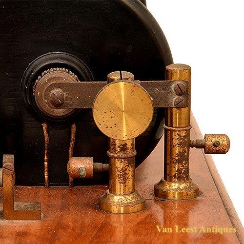 Induction coil or Ruhmkorff Coil. A kind of electrical transformer used to produce high voltage pulses from a low voltage direct current. The induction coil was the first type of transformer. Development started in 1836 by nicholas callan and others. Heinrich Daniel Ruhmkorff (1803-1877) however made the first successful device of this type in 1851. Not Signed . Dimensions 25 x 57 x 24 cm.