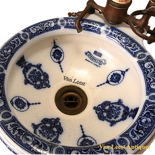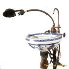 An Italian Spittoon for dental use, C 1880. There is a tap and a Lamp construction on the Spittoon. The spittoon is made from Porcelain and is signed by “Ozonita, Patent no 17383/10”. Height 120 cm.