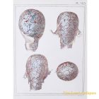 Hand coloured anatomical print no. 323 of Jules Cloquet’s Manuel d’anatomie descriptive du corps humain of 1825 from volume 2 (of 4 volumes). The print represents an arrangement the outside of the uterus during pregnancy, viewed from various angles.