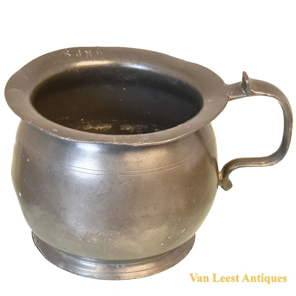 Pewter chamber pot with engraved makersmark ‘SJN6’.
