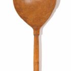 Two fruitwood, handcarved, pharmacyspoons. One pointed and the other rounded, with a primitive carving on the stem. They are in a mint condition and show no cracks.