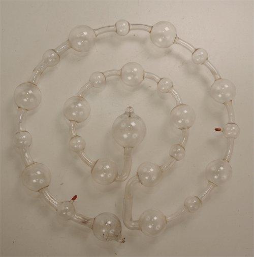 A phosphorescent tube containing a trace of gas which continues to glow for a short time after the discharge has ceased. Two concentric circles in original box, without foot. Diameter 38 cm.