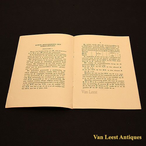 Anaglyphs, used in the study of descriptive geometry in secondary schools. Manufactured by W.C.A. Ridderhof, Teacher 1st H.B.S. 5 years, The Hague. January 1927. The set consists of the Original Anaglyph glasses, 10 plates and a description.