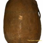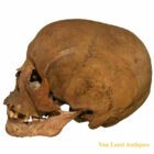 A human scafocefalie skull. It is a congenital defect that is based on a premature conclusion of that arrow seam. The skull to grow further in for- backward direction (not in width), hence his long form. It is a grave rest, from dutch soil. Probably around 1880-1900 excavated because at that time cemeteries were cleared because of urban expansion and population growth.