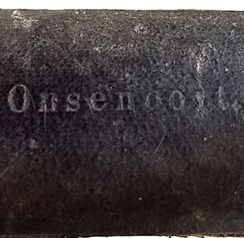 A bent under ninety degrees surgical in original case . Probably, the knife was used for amputation purposes and date around C 1850. The blade cuts on both sides, has an ivory handle, is signed by Fuchs Bonn and is in the original casewith red velvet and silk . The leather case has  the name of a Dutch doctor: Orsenoort. Knife length amounts to 33 cm.