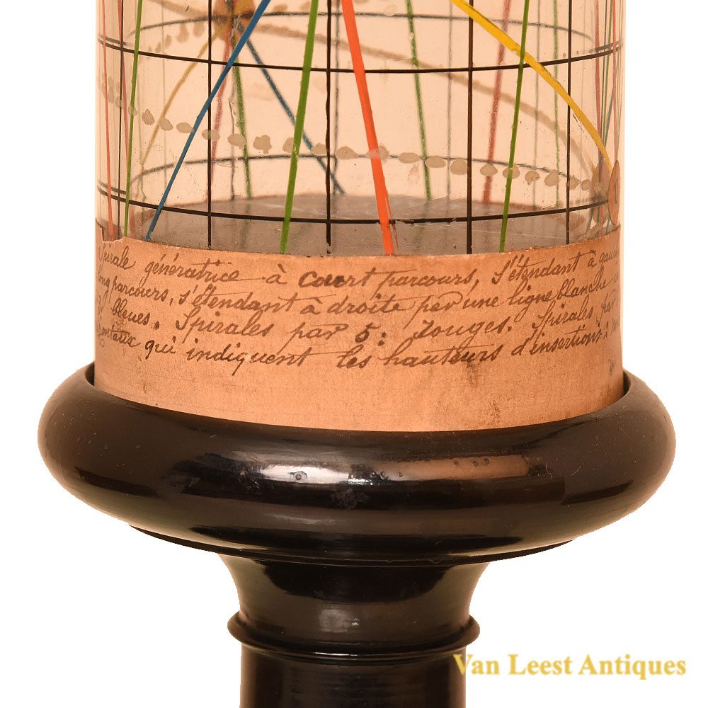 Cylinder made of thick glass on a wooden base. The lines are painted on the cylinder with oil paint. According to Professor Dr. L. knv.