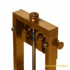 Two Sirens Circa 1850-1880. In perfect working condition. It comprises a small air-chest at bottom with an oblique-perforated rotor and worm drive above. When air from a bellows is forced into the bottom, it blows out from a series of oblique several holes in the top of the air chest. These holes coincide with others in the rotor and cause it to rotate at high velocity, emiting and very loud wailing sound. By sliding the headgear to one side causes the worm on the rotor to engage with a pinion which in turn on the dials to revolve, indicating the speed of rotation. Measurements: 15 cm by 12 cm and the one with the rules 23 cm high by 12 cm ( the wooden base isn’t original
