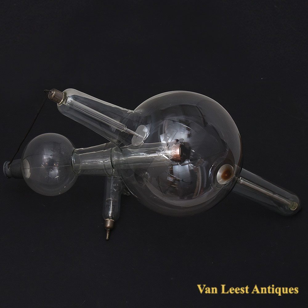 I have not observed this standard for the X-ray tube before. I therefore think this set comes from a laboratory given the wooden suspension of the tube with the cardboard protection of the tube but obviously not for the X-ray.