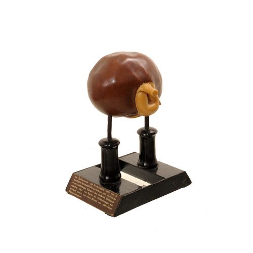 Serie 8 c, five wax models, submitted by f. Ziegler, c 1930. Models are made to example of prof. Von szilly. It is a view of the ontogenesis of the idiotype gap formation of the eye of microphthalmia and the orbitalcysten. It concerns a rabbit eye. Maximum height 32 cm.